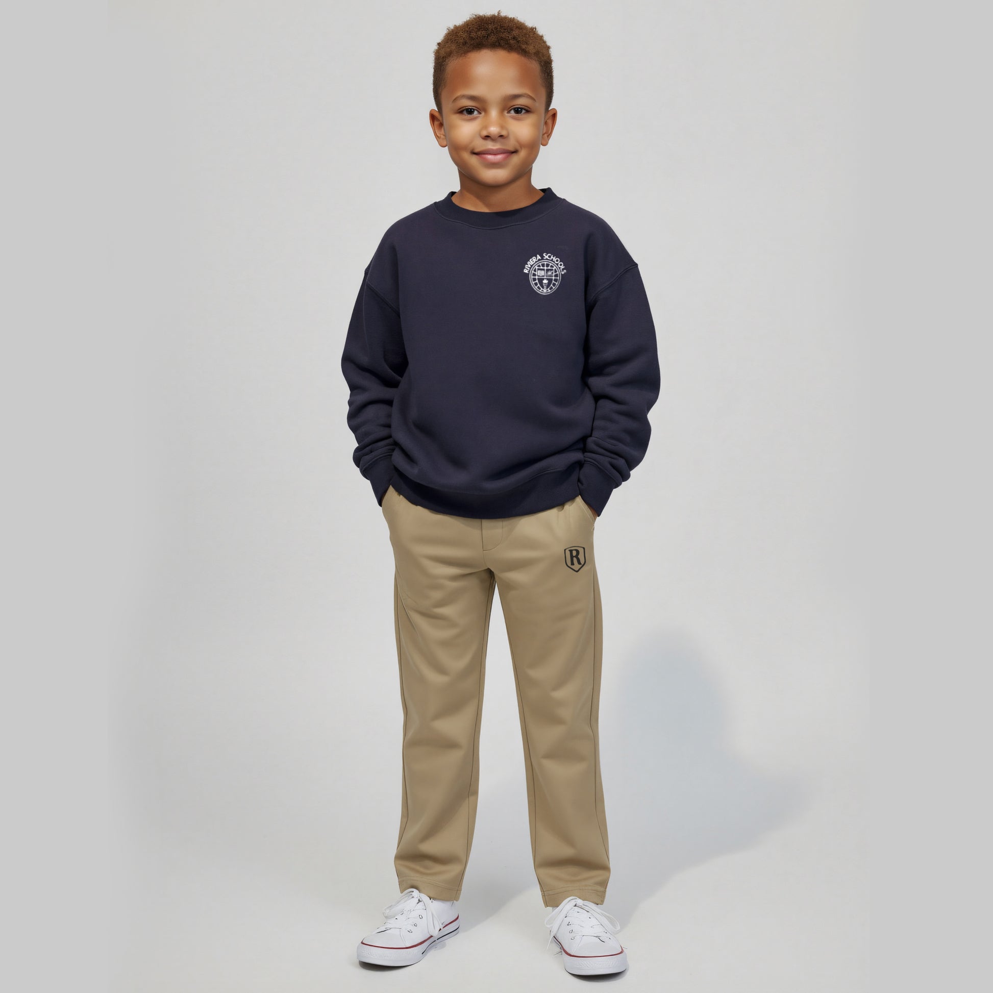Cotton Stretch Twill Pant with an elastic waistband & school logo