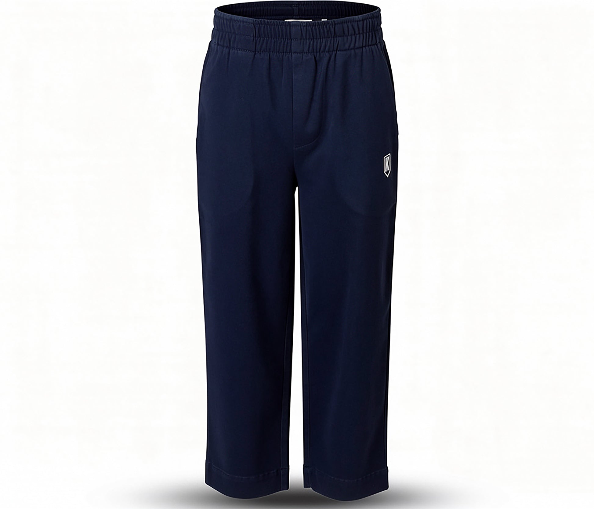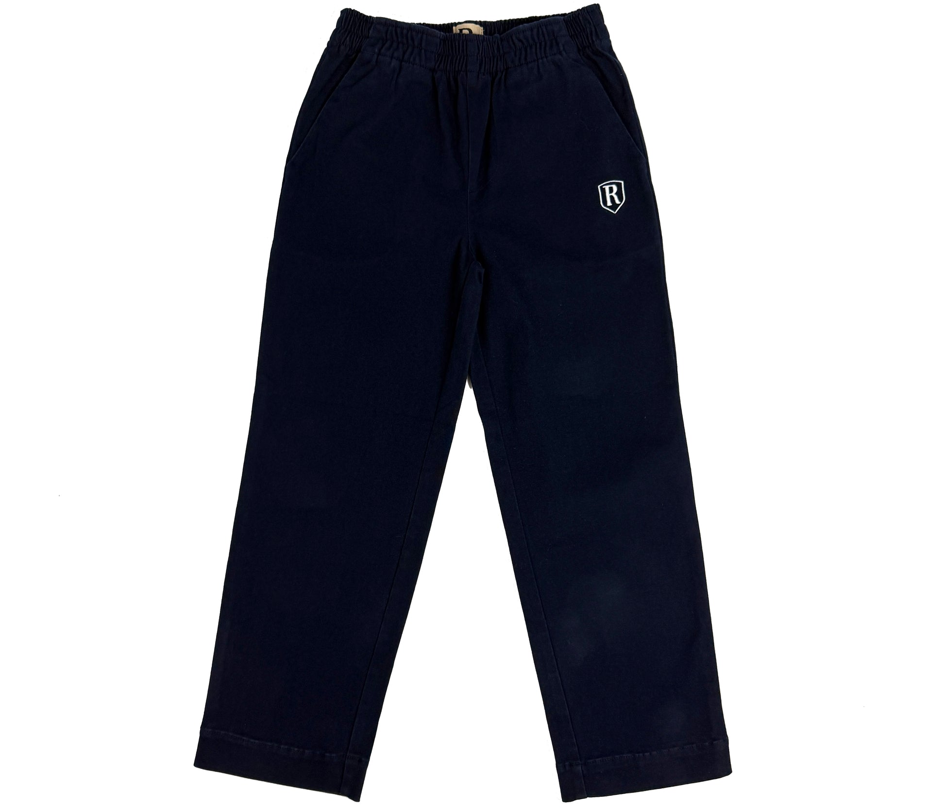 Cotton Stretch Twill Pants with Elastic Waistband & School Logo